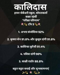 Pride and passion define our academic journey at Kalidas Vidya Niketan Higher Secondary School. Every year, our students achieve remarkable results in Board Exams, and many are recognized as District and State Toppers.